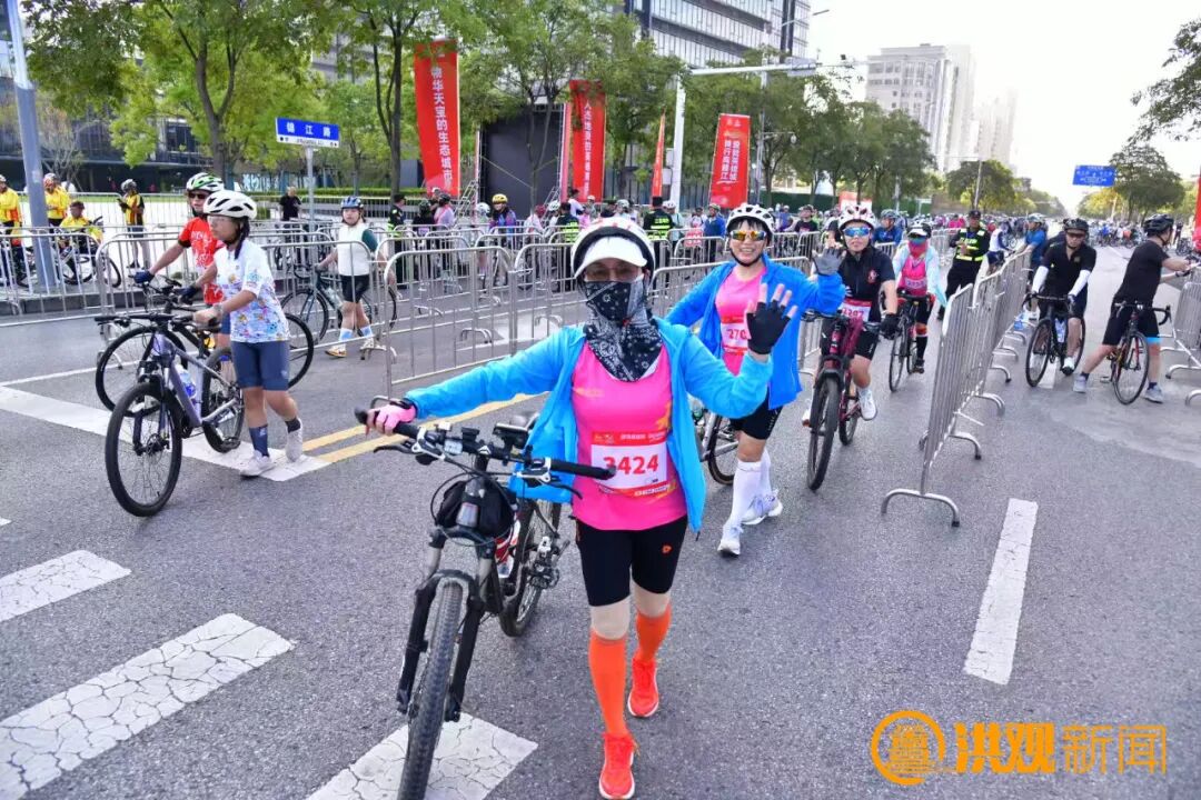 經(jīng)過南昌國際體育中心時,場館的現(xiàn)代建筑輪廓與江景相得益彰。歡樂騎的騎友最終在水天消防廣場結(jié)束行程,鐵人騎的騎友則沿著贛江南大道、洪州大道西、三清山大道,朝著終點(diǎn)南昌中學(xué)九龍湖校區(qū)東門繼續(xù)騎行。