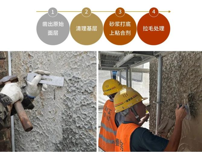 此次拉毛墻面修繕,為新時期歷史建筑修繕保護工程修復拉毛墻面開創(chuàng)了新的樣板。