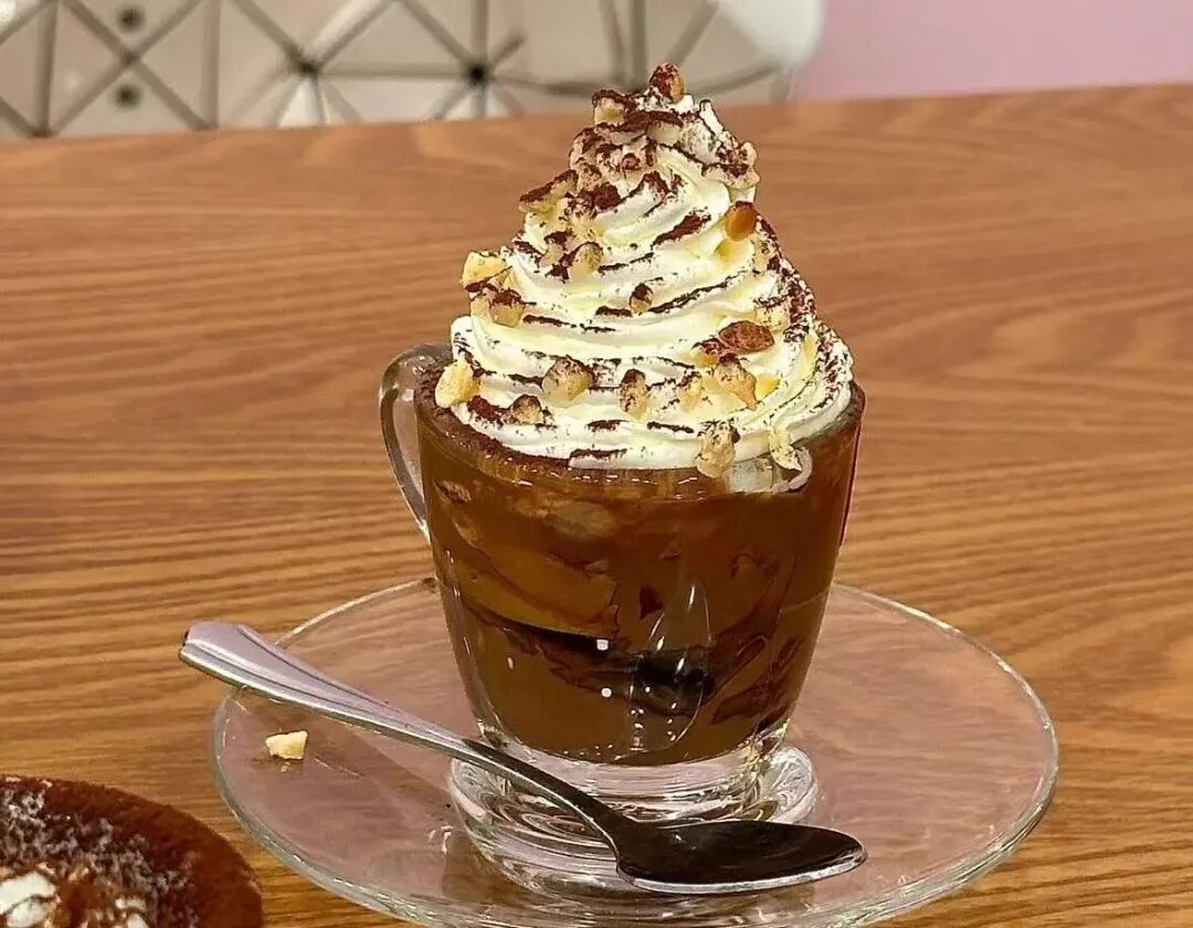 蛋咖啡Egg Coffee也采用了類似的思路,通過風(fēng)味搭配降低濃縮咖啡本身的濃度,比如“姐姐”咖啡是濃縮咖啡 + 可可粉 + 鮮奶油的組合,榛子咖啡則加入了榛子醬、奶油、榛子碎,網(wǎng)友普遍評價“層次感十足”。