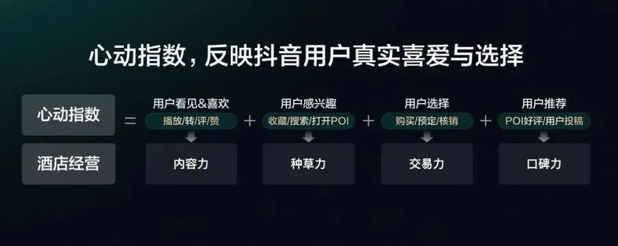 抖音生活服務(wù)是“酒店生活劇場”,傳遞情緒、氛圍和美學(xué)等軟性價(jià)值,為用戶構(gòu)建“種草 - 心動 - 轉(zhuǎn)化”的感性決策路徑,實(shí)現(xiàn)“精準(zhǔn)推薦 + 所見即所得”,無需抽象描述。