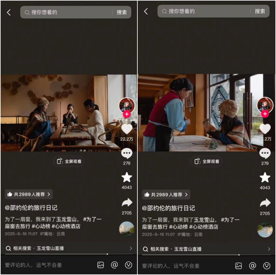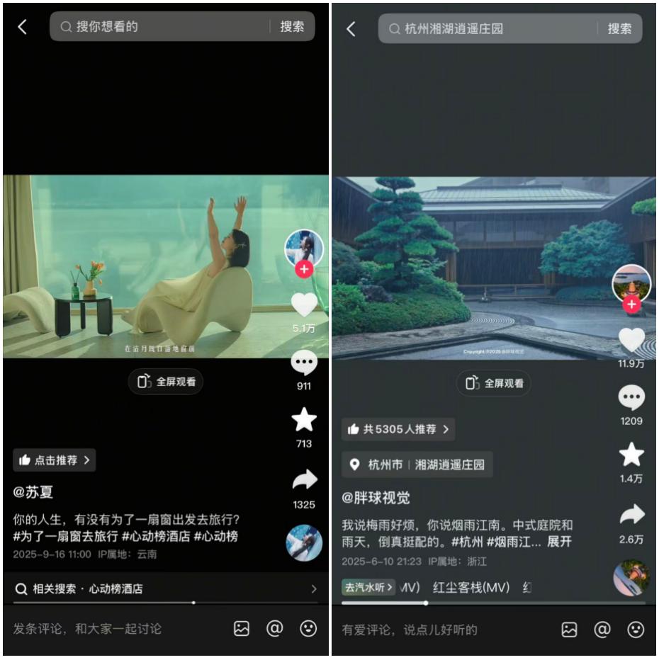 普通酒店缺乏差異化內(nèi)容,而特色生活方式酒店有豐富素材。商家可將“體驗(yàn)”拆解為具體場景,讓用戶產(chǎn)生代入感。這類內(nèi)容帶來的“看后搜、看后買”,成為新客源的重要來源。