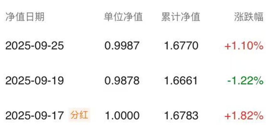 (如上圖)這只產(chǎn)品在9月17日完成分紅,凈值回到1.0元后,出現(xiàn)了這種情況。