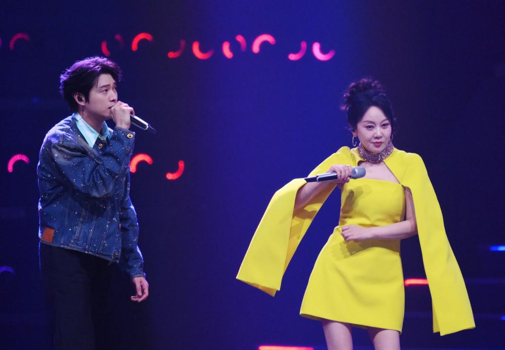 9月28日,王力宏(左)和單依純在演唱《落葉歸根》。新華社發(fā)(張金加攝)