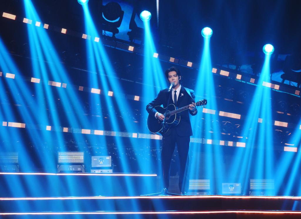 9月28日,肖戰(zhàn)在演唱《整晚的音樂》。新華社發(fā)(張金加攝)