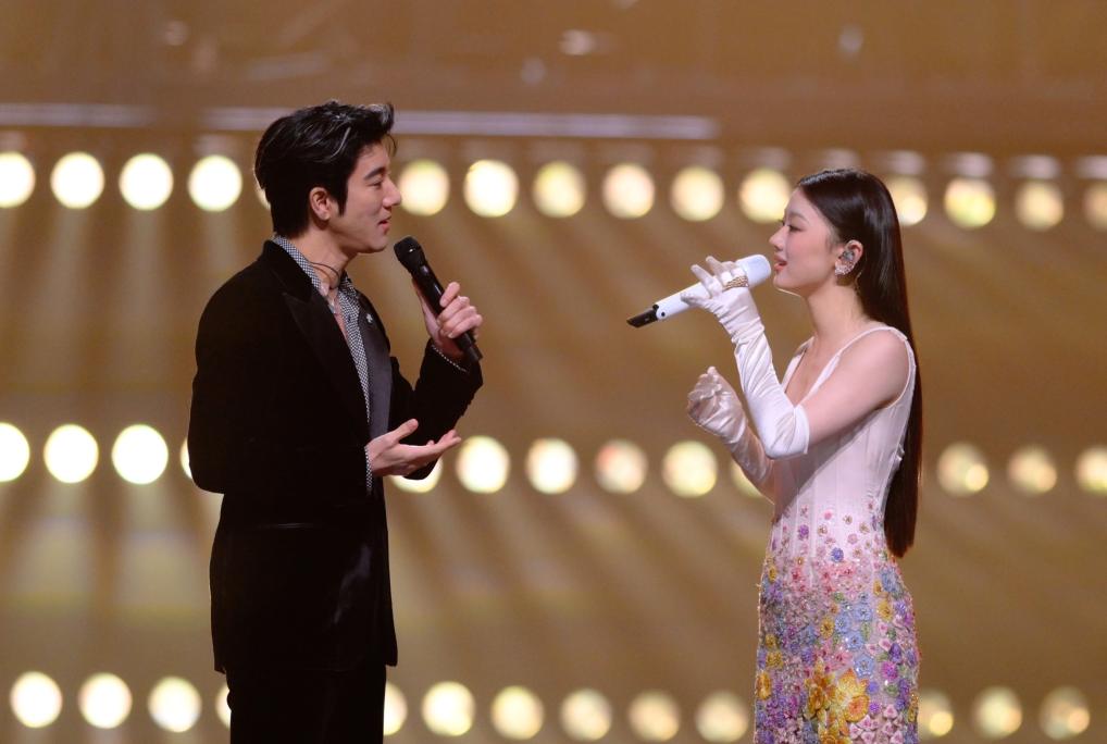 9月28日,閆妮(右)和魏大勛在演唱《Mojito》。新華社發(fā)(張金加攝)