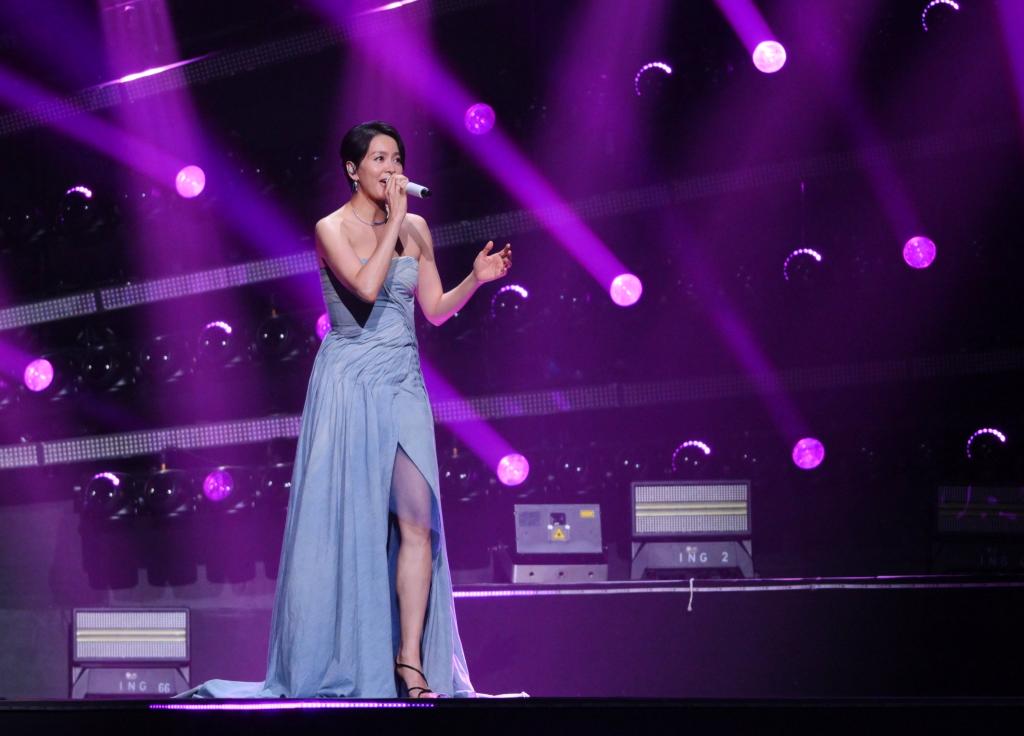 9月28日,梁詠琪在演唱《膽小鬼》。新華社發(fā)(張金加攝)