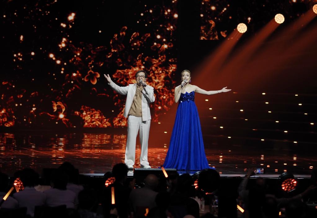 9月28日,成龍(左)和容祖兒在晚會(huì)上演出。新華社發(fā)(王申攝)