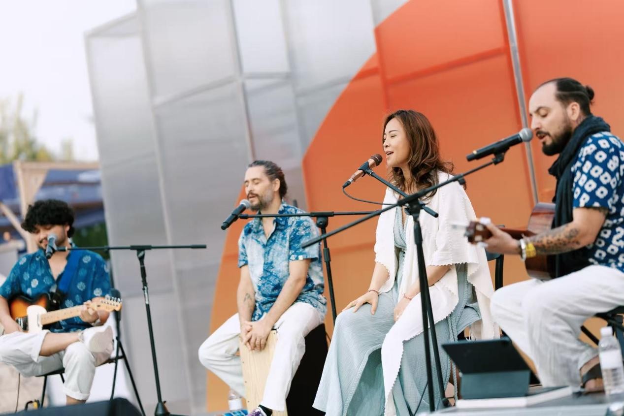 “身體覺醒”系列中,百余人在面海草坪上同步呼吸伸展,頌缽聲波與海浪聲相互共鳴,帶來了深度的沉浸體驗(yàn)。“多維聲療”系列則利用酒神劇場(chǎng)的獨(dú)特聲學(xué)環(huán)境,打造了全場(chǎng)爆滿的“日落劇場(chǎng)LIVE”活動(dòng)。