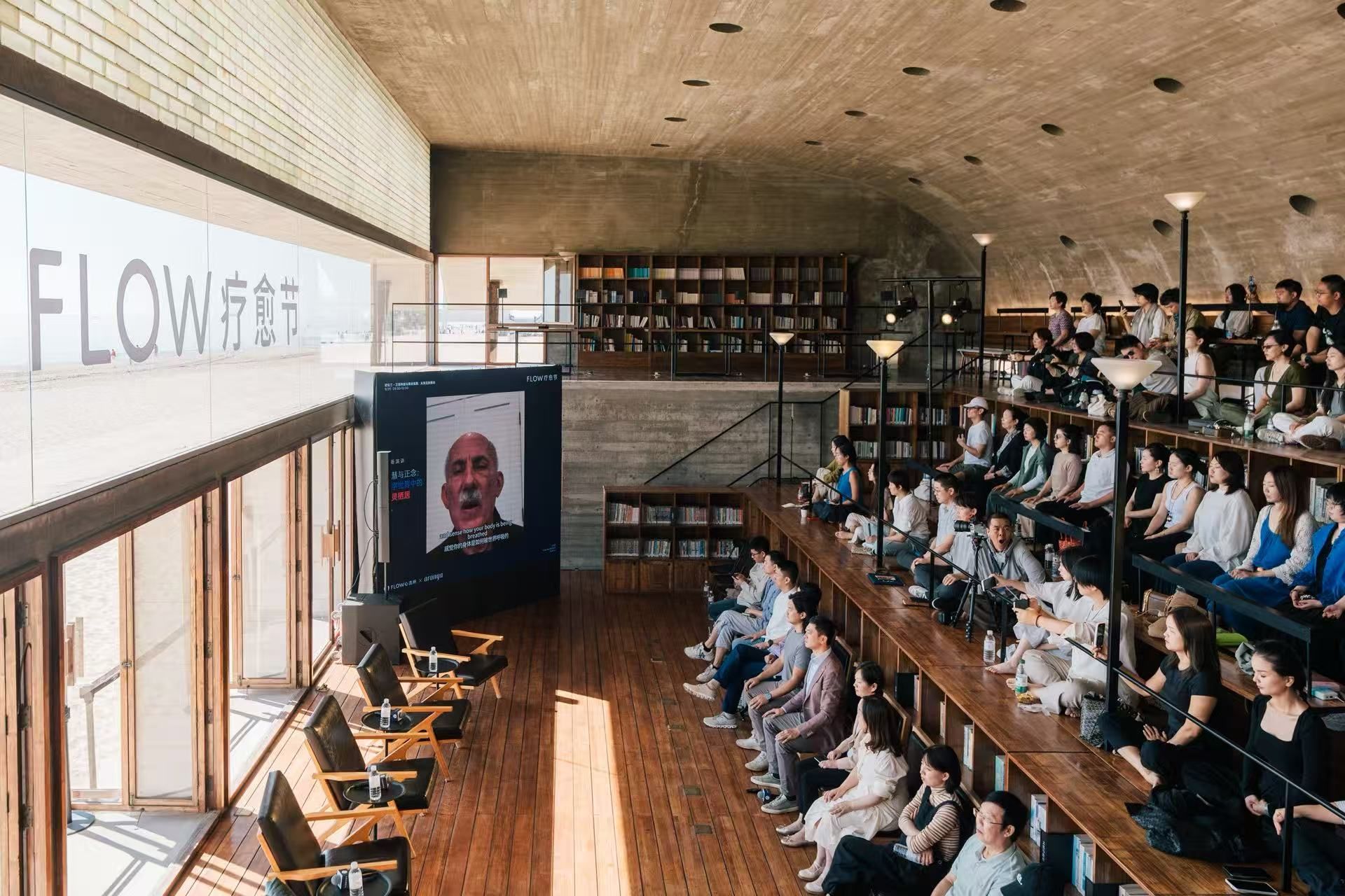 FLOW療愈節(jié)的最大亮點(diǎn)在于其跨界融合的創(chuàng)新理念。活動(dòng)期間,超個(gè)人心理與催眠、AI科技與商業(yè)、自然景觀與建筑空間等多元療愈方法相互交流融合。