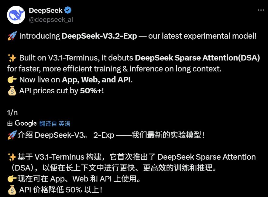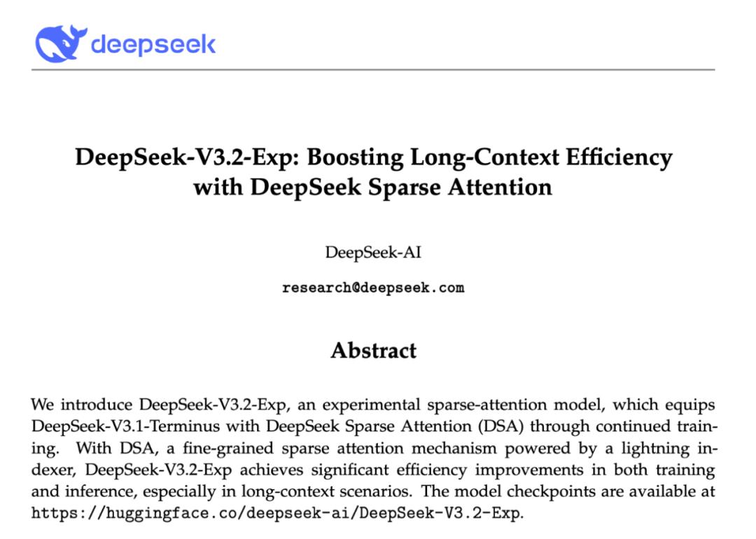 剛剛,DeepSeek開(kāi)源V3.2-Exp,公開(kāi)新稀疏注意力機(jī)制DSA