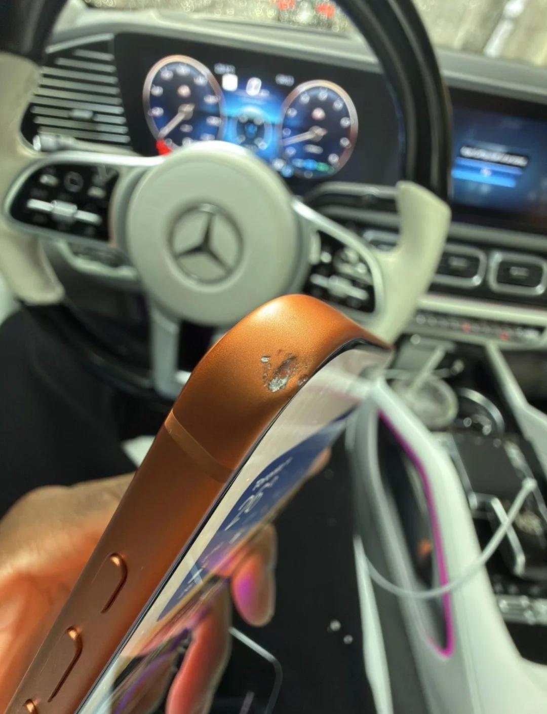 國內(nèi)自媒體博主前往蘋果門店證實,iPhone展示支架在背板上滑動會出現(xiàn)類似劃痕痕跡,但并非涂層被刮掉露出鋁合金本體顏色,而是支架磨損留痕,簡單清潔即可擦除。