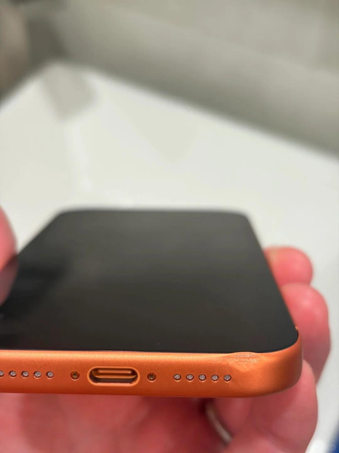 用硬幣鑰匙等物品刮蹭時,攝像頭平臺周邊銳角處涂層接觸點明顯脫落,露出原色鋁合金本體。而且,深色機型劃痕更顯著,深藍、宇宙橙配色在光照下劃痕反差大,用戶擔(dān)憂機身抗磨損能力下降。