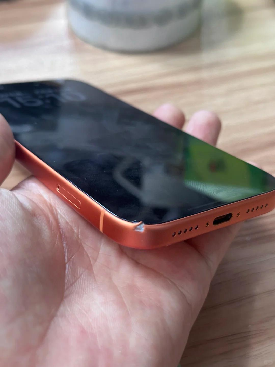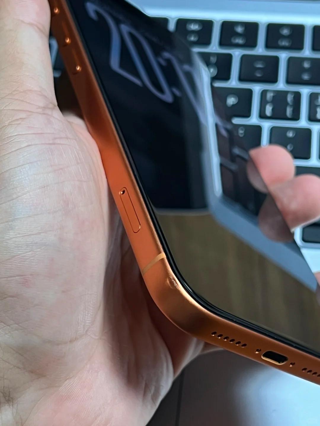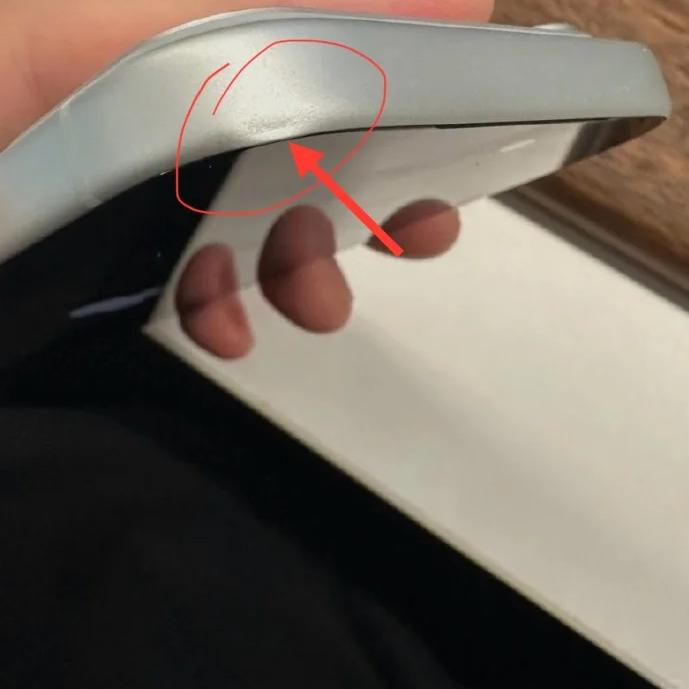 除了掉漆,新iPhone還不耐摔。用戶shaddock分享了新iPhone“第一摔”的經(jīng)歷:新買的iPhone沒戴全包手機殼,摔落后機身正面左下方有明顯凹痕。