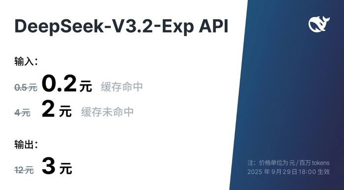 DeepSeek-V3.2-Exp模型發(fā)布開源,API價格大幅降低