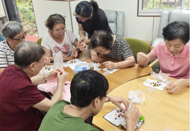 此外,服務(wù)站還根據(jù)老人喜好,將節(jié)日元素融入手工藝品制作,送上特別的溫暖與關(guān)愛(ài)。長(zhǎng)二一委為老服務(wù)站開(kāi)展馬賽克杯墊制作,長(zhǎng)四一委為老服務(wù)站開(kāi)展手串制作,長(zhǎng)三為老服務(wù)站舉辦國(guó)慶節(jié)主題非遺拓印團(tuán)扇手作活動(dòng)。老人們?cè)谥谱髦邢硎軜?lè)趣,表達(dá)了對(duì)生活的熱愛(ài)和對(duì)祖國(guó)的祝福。