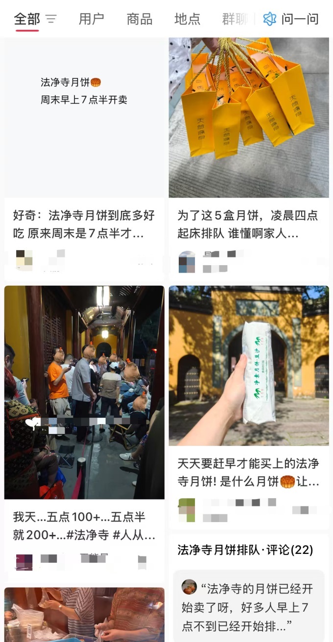 小紅書上有關(guān)于法凈寺月餅排隊(duì)的帖子。