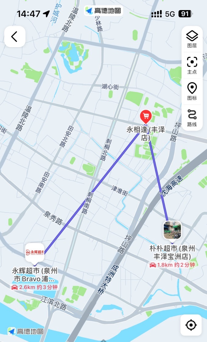 筆者實(shí)地走訪永輝超市浦西萬(wàn)達(dá)店、樸樸超市寶洲店與永相逢超市豐澤店后發(fā)現(xiàn),三家門(mén)店直線距離均在3公里內(nèi),僅隔兩個(gè)街區(qū)。它們的消費(fèi)人群高度重合,在這片競(jìng)爭(zhēng)激烈的區(qū)域里,永相逢要守住本地客源,面臨著不小的挑戰(zhàn)。