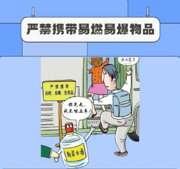 乘坐公共交通工具要遵守相關(guān)規(guī)定,嚴(yán)禁攜帶易燃易爆物品乘車。