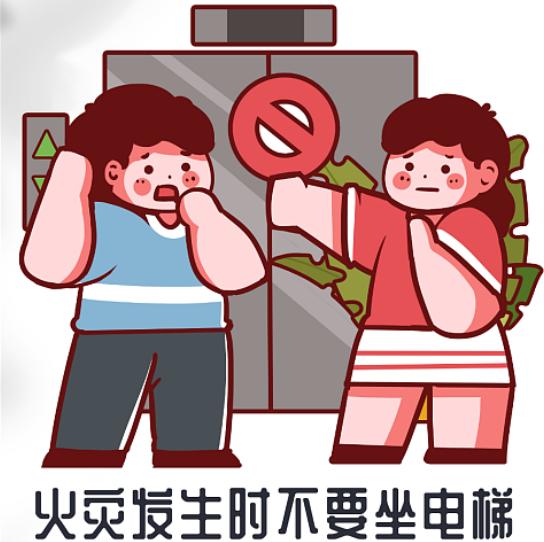 遇到火災(zāi)時,及時撥打119電話報警,逃生時不貪戀財物、不返回火場、不乘坐電梯、不盲目跳樓。
