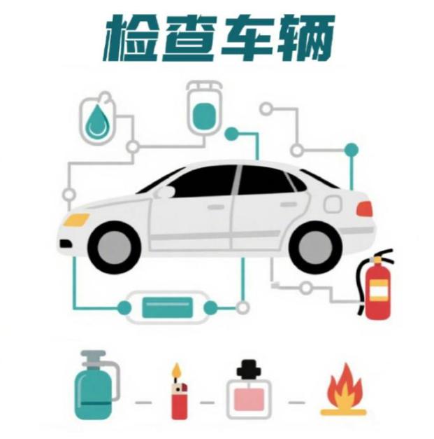 假期駕車出游前,檢查車輛電路、油路,檢查車載滅火器是否過期失效。
