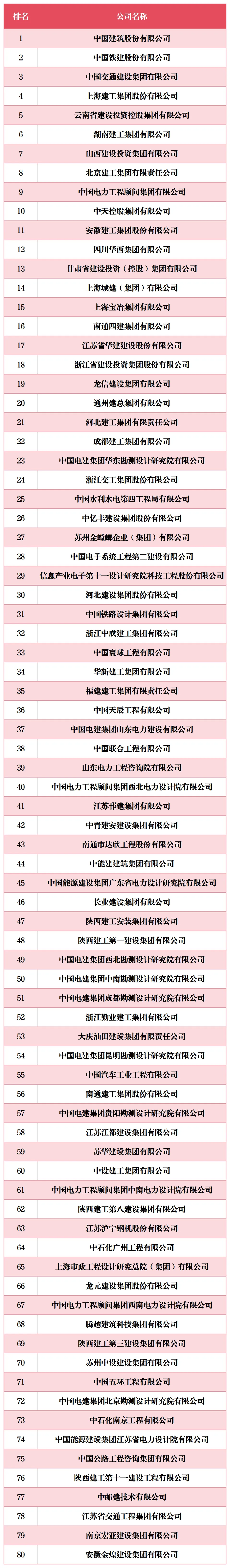 2025年ENR/建筑時(shí)報(bào)“中國(guó)承包商80強(qiáng)和工程設(shè)計(jì)企業(yè)60強(qiáng)”榜單揭曉
