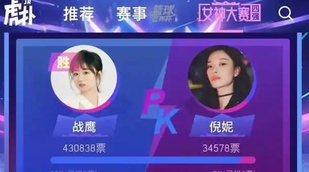 在第八屆女神大賽中,職業(yè)圍棋二段選手戰(zhàn)鷹連續(xù)淘汰鄧紫棋、倪妮、賈靜雯等諸多直男心中的女神,創(chuàng)下賽事最高票數(shù)紀(jì)錄43萬(wàn)票,戰(zhàn)勝虎撲白月光高圓圓奪冠。
