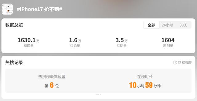 “iPhone 17搶不到”這五個(gè)字,迅速?zèng)_上微博熱搜,庫(kù)克和他的蘋(píng)果這次可是大獲全勝。