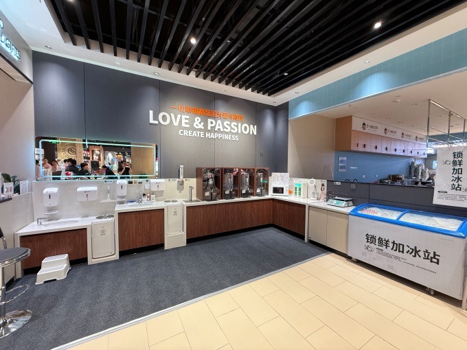 同時(shí),新增了顧客休息區(qū),配備了直飲水、身高體重測(cè)量?jī)x、免費(fèi)1小時(shí)充電寶等便民設(shè)施;還提供海鮮打氧清洗、肉類切絲切片等加工服務(wù)。
