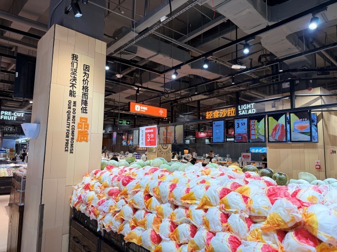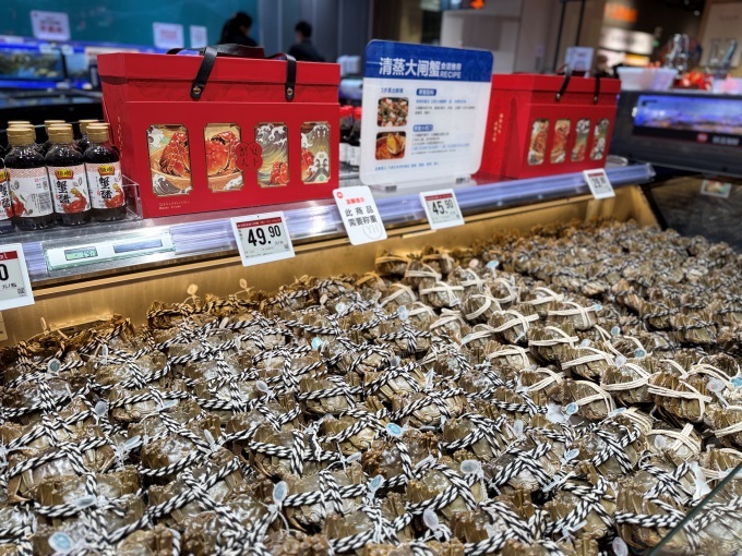 肉禽水產(chǎn)方面,引入了農(nóng)夫好牛牛腩塊、無(wú)抗雞、潮汕風(fēng)味牛肉及澳洲、新西蘭進(jìn)口牛肉,還新增了帝王蟹、梭子蟹、三文魚等高端海鮮。
