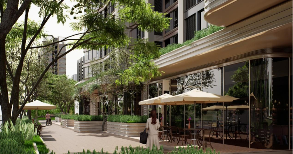 中環(huán)麓島創(chuàng)造性地打造了約1.5公里的生息街道,從鏈接底商的生活街區(qū),到串聯(lián)商業(yè)、公園、居住的立體街區(qū),通過道路退界、柔性邊界、消融內外界限,將街道轉化為社區(qū)生活的自然延伸。拆解建筑體量,嵌入口袋公園;打開室內外空間,讓生活場景自然溢出,形成一條串聯(lián)商業(yè)、公園與居住的立體活力廊道。