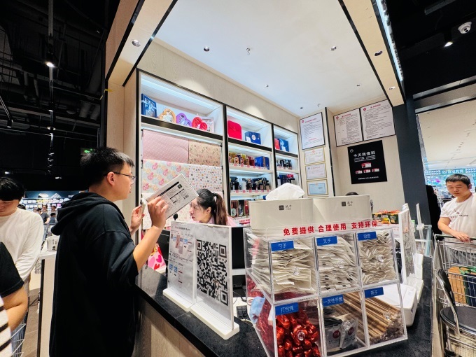 賣場環(huán)境優(yōu)化,取消強制動線,主通道拓寬,貨架降低層數,空間更通透。細節(jié)服務周到,如配備放大鏡、濕手器等,還提供水果現切、手套等服務。
