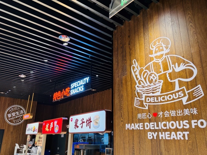 熟食區(qū)有‘東來同款’美食,還有本地風味小吃,吸引上班族購買。