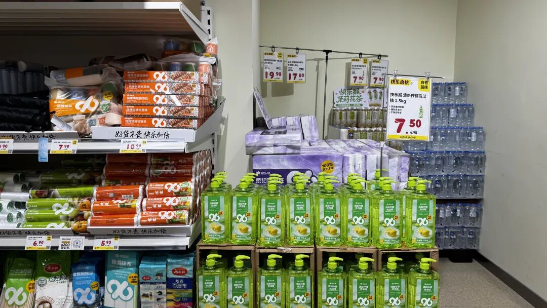 相比首店,新店的自有品牌矩陣擴(kuò)容,糧油米面、日化、果飲等高頻消費(fèi)品類商品不斷豐富??鞓?lè)猴自有品牌(“猴牌”)通過(guò)供應(yīng)鏈直采模式壓縮中間環(huán)節(jié),在保障品質(zhì)的同時(shí)強(qiáng)化價(jià)格優(yōu)勢(shì),契合其“高性價(jià)比”消費(fèi)感知,也能形成差異化毛利池。