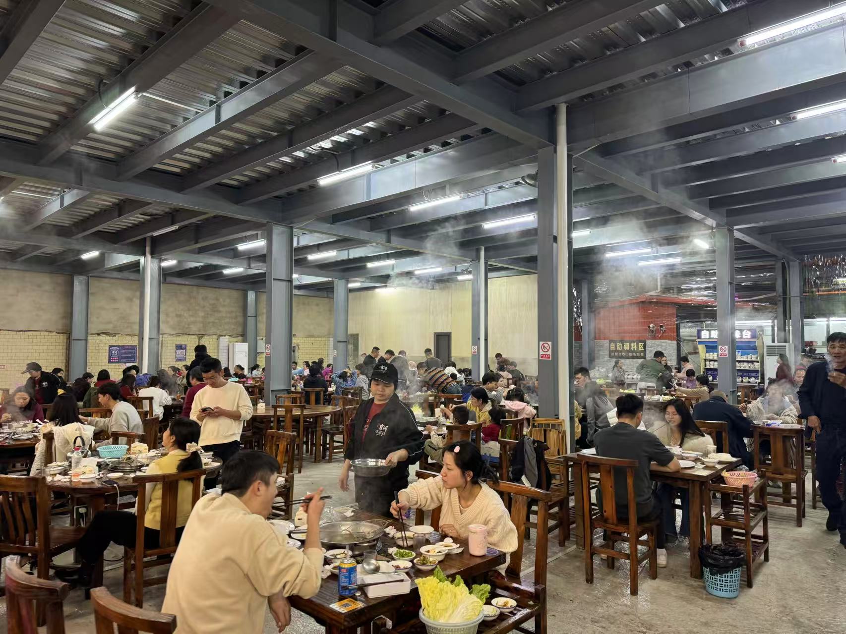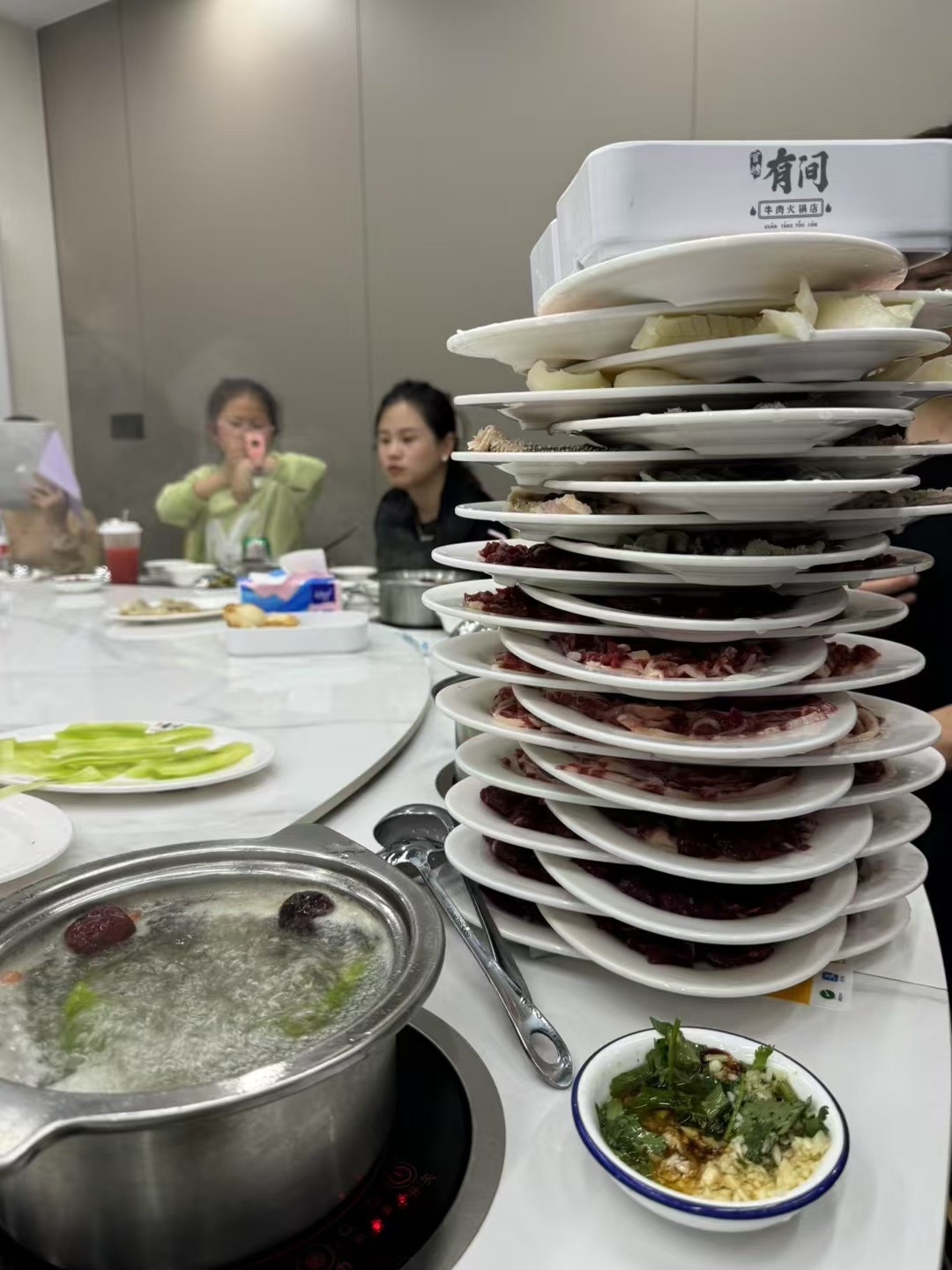晚飯大家都盼著吃頓好的牛肉火鍋。司機(jī)帶我們?nèi)チ水?dāng)?shù)赜忻摹盎疱伋恰?,進(jìn)去全是水蒸氣,有種飄飄欲仙的感覺。一人一個(gè)小火鍋,把菜單上的牛肉都點(diǎn)了一遍,吃得超爽,緩解了一天的疲憊。