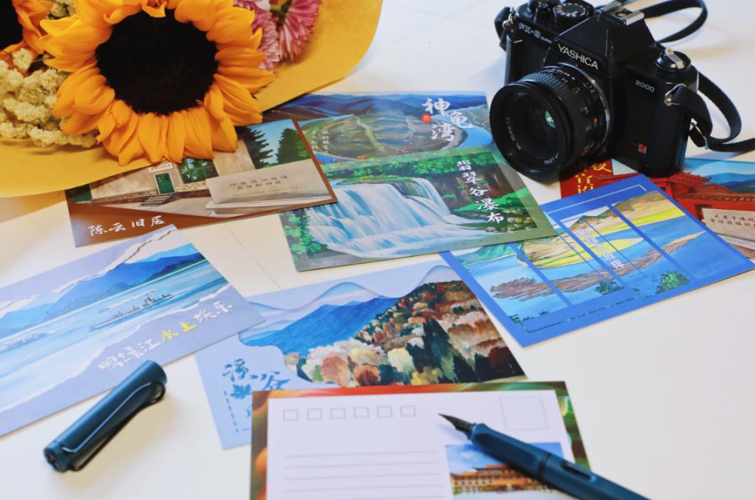 畫師用細(xì)膩的筆觸,勾勒出老禿頂子的云海、翡翠谷的飛瀑以及中朝國(guó)境大橋的壯闊。每一張明信片都是一處可以郵寄的風(fēng)景。