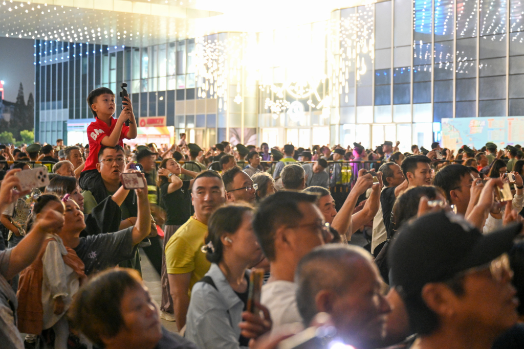 市民游客觀看《哪吒鬧?!贰E炫刃侣動浾?朱偉輝 圖