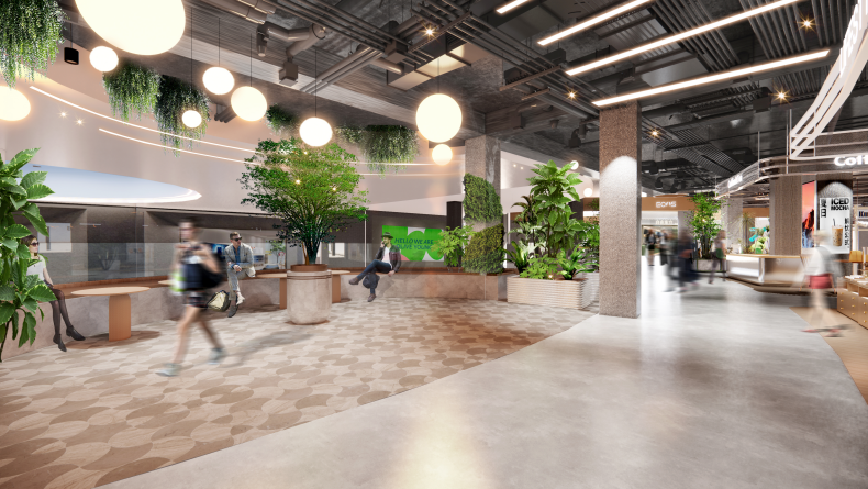 據(jù)項目負責人介紹,調(diào)改將重點打造“社區(qū)透景灰空間”與“下沉廣場”兩大特色場景。以通透視野設(shè)計打造類戶外社交空間,通過開放式布局保留自然采光與景觀滲透,既能有效緩解商業(yè)“潮汐現(xiàn)象”,又能讓市民享受陽光微風,透過空間的通透感,既能看到街景的變化,也能看到社區(qū)的煙火日常。夏天可以遮陽,秋天可以吹風,買杯奶茶坐在這里看運河邊人來人往,十分愜意。西入口的下沉廣場,從運河文化廣場逛過來,仿佛走進“運河小花園”,成為連接廣場與商業(yè)體的“過渡樞紐”,讓步行體驗更加流暢自然。