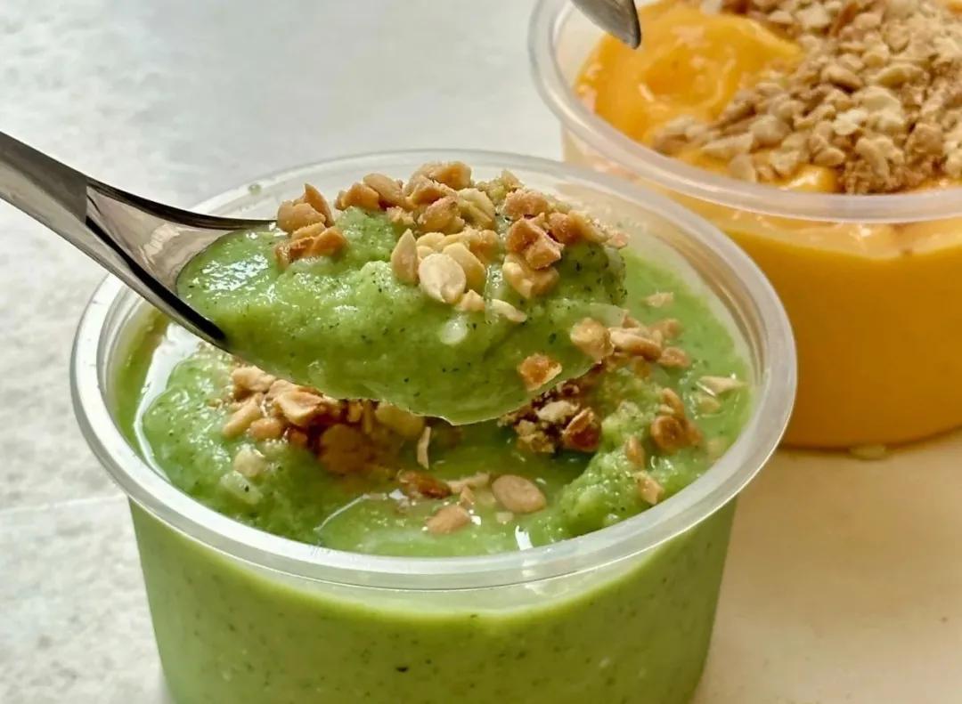 原本是將水果、冰、糯米混合打成沙冰,再撒上黃豆粉、花生等小料的清爽甜品。如今,貴州品牌去茶山將其創(chuàng)新演繹,打造成門店的招牌飲品。