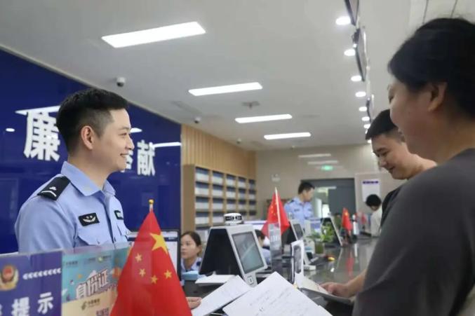 ▲國(guó)慶首日,新站分局戶政中心民警熱情接待辦證群眾。