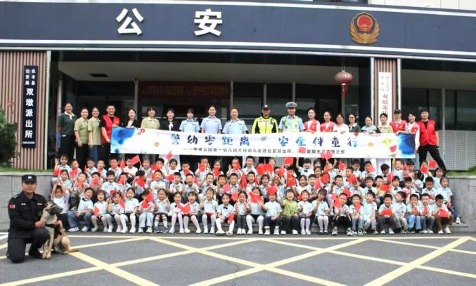 ▲長(zhǎng)豐縣雙墩鎮(zhèn)中央公園第一幼兒園的師生及家長(zhǎng)走進(jìn)警營(yíng),零距離感受警營(yíng)文化,共慶祖國(guó)母親的生日。