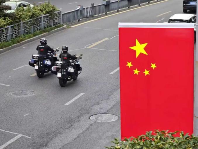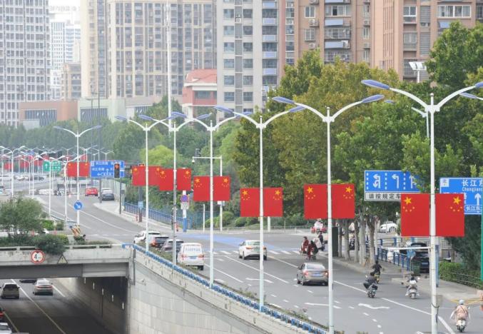 道路兩邊迎風(fēng)飄揚(yáng)的國(guó)旗,讓人看了心潮澎湃,滿滿的自豪感涌上心頭。