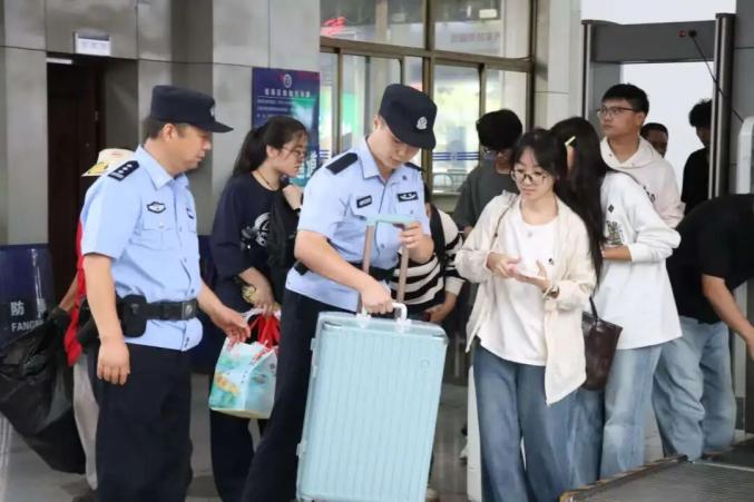 ▲瑤海區(qū)明光路汽車站迎來客流高峰,瑤海分局民警輔警們忙碌的身影穿梭其中,引導(dǎo)旅客有序排隊(duì)安檢,為攜帶大件行李的旅客提供“搭把手”服務(wù)。