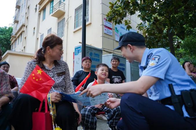 ▲肥西縣公安局桃花派出所民警在社區(qū)開展安全防范宣傳,和市民一起歡度國(guó)慶。