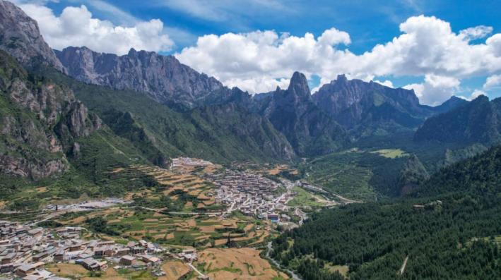 扎尕那景區(qū)的藏寨如星星點(diǎn)綴在云端,山林、石峰、村寨構(gòu)成美麗畫卷,吸引眾多游客。曹紅祖 攝影