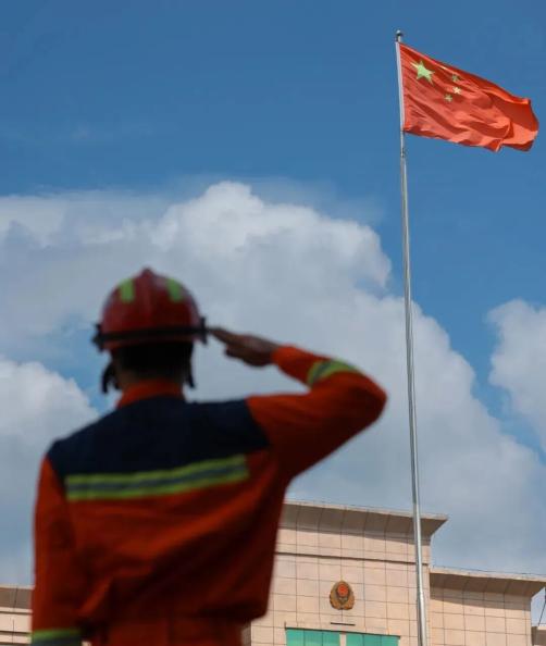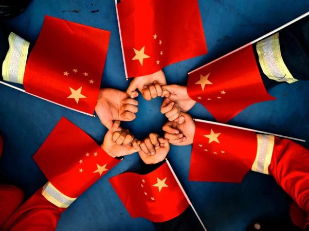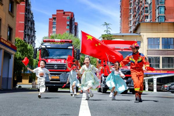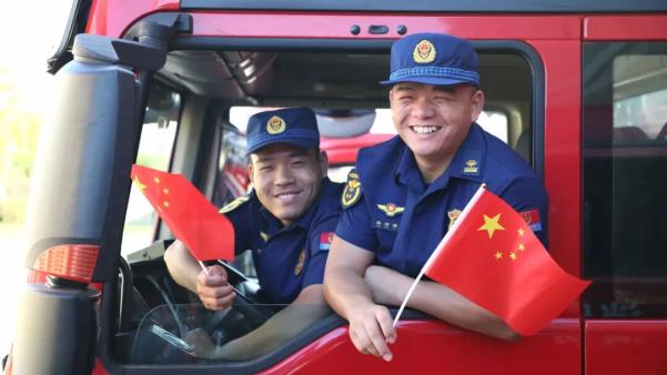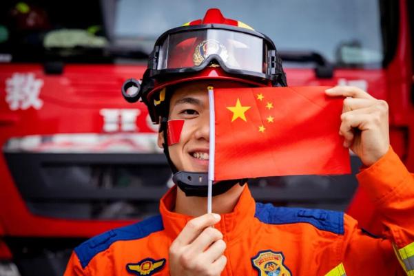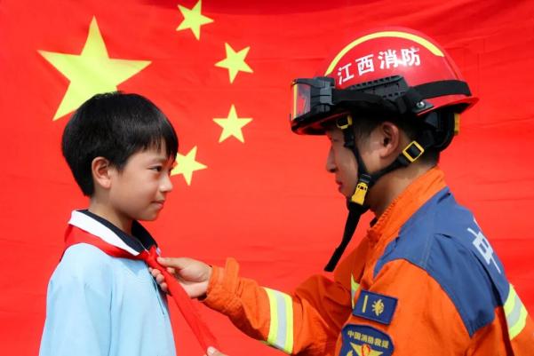向祖國(guó)表白!江西消防員與國(guó)旗創(chuàng)意合影