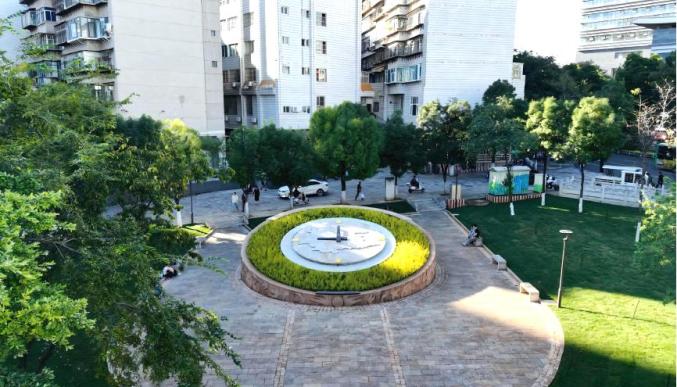 廣場一角的抗戰(zhàn)勝利紀(jì)念鐘,被草坪和云南特有的民族符號環(huán)抱,指針定格歷史瞬間,銘記著勝利的榮光。