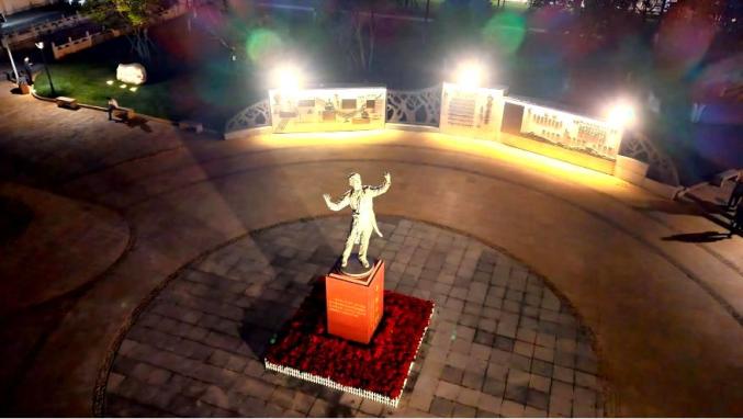 聶耳雕像傲立在廣場中央,他左手握拳、右手揮拍,將青春聶耳意氣風(fēng)發(fā)的神韻凝鑄成青銅的永恒,盡顯民族氣節(jié)。