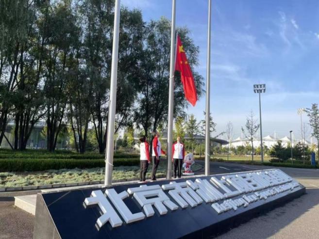 10月1日,雪車、鋼架雪車和雪橇這三支隊伍的100余名成員,在北京市冰上項目訓練基地舉行了國慶升旗儀式,共同慶祝祖國母親76歲生日。在此次升旗儀式中,雪橇國家集訓隊的居巴依·賽克依擔任升旗手,古麗潔乃提·阿迪克尤木和趙佳穎擔任護旗手。
