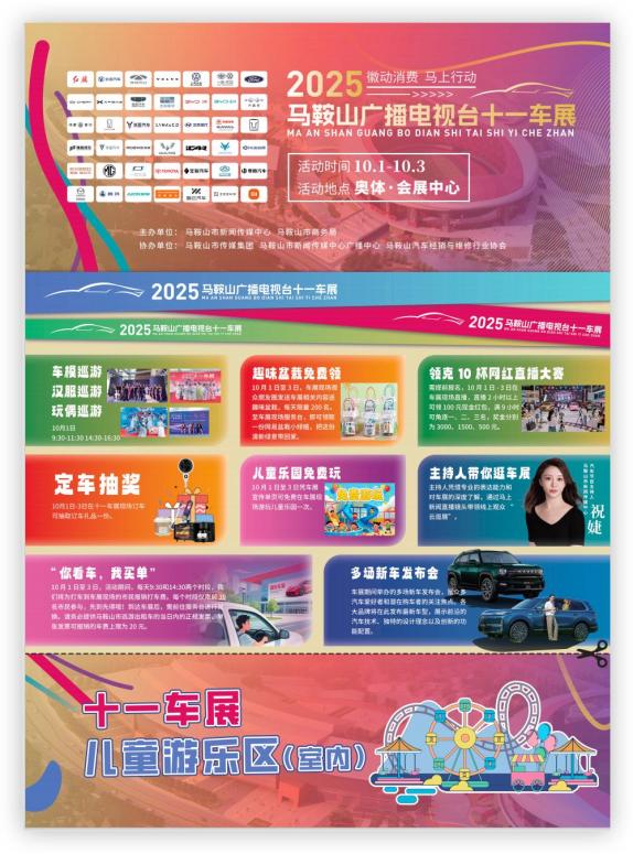 活動(dòng)內(nèi)容:馬鞍山十一車展,歡迎廣大市民親臨現(xiàn)場(chǎng),暢享購(gòu)車優(yōu)惠,體驗(yàn)汽車文化盛宴!