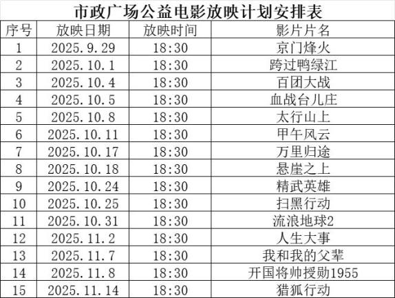 活動(dòng)名稱:市政廣場(chǎng)公益電影放映